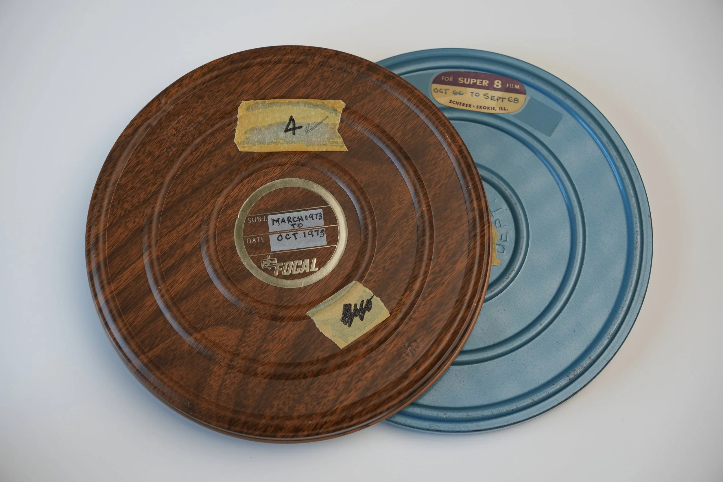 Film canisters of “Oct 66 to Sep 68” and “March 73 to Oct 75.” Courtesy Bob Smith and Mary Zuber-Smith. Image subject to copyright laws.